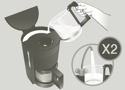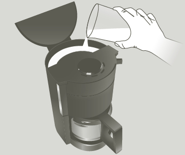 • Öntse az oldatot a víztartályba (kávé nélkül)